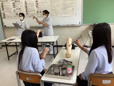 今回は看護学科教員による模擬授業「救急看護技術」と看護学科2年生による「採血体験」と「傷の消毒と包帯法」「小児看護体験」の三つの看護体験を楽しんでもらいました!