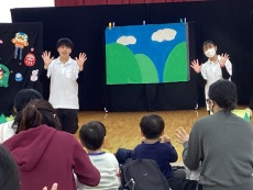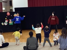 手遊びや劇、ダンスなどを通して、親子と学生が一緒に楽しい時間を過ごしました。