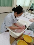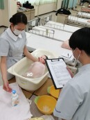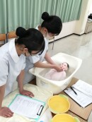 『命をはぐくむ人への看護プロセス』の授業で、赤ちゃんの健康チェック、沐浴(お風呂)、授乳等を実施しました。