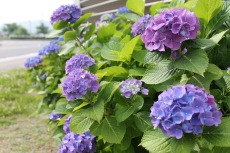 紫陽花が学生の登校を迎えてくれます♪