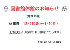 ・冬休み休館および開館時間のお知らせ
